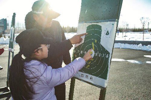 12月4日,少年警校小学员和教官一起检靶。 杜亚楠 摄