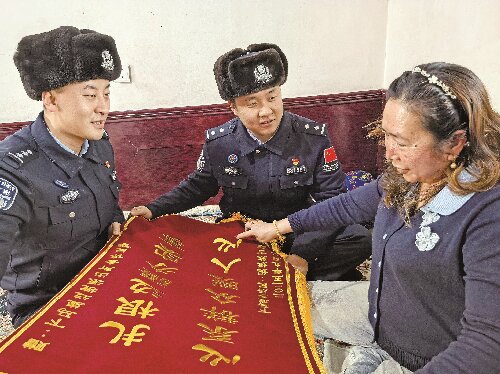 2026年1月1日,轮台县居民向该县公安局哈尔巴克乡派出所民警赠送锦旗。 厚斌斌 摄