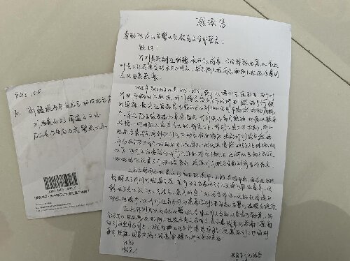 2025年11月10日,皮山县公安局交管大队民警收到王先生寄来的感谢信。