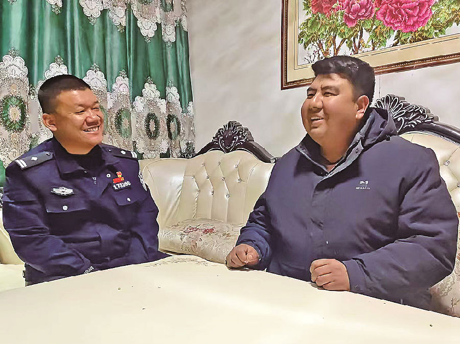 1月13日,皮山县公安局桑株镇派出所教导员陆文波和往常一样,沿着镇上的道路巡逻,每到一个路口,他都会和交通劝导员聊一聊。
