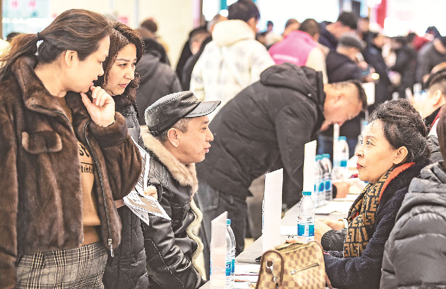 2月28日,应聘者向用工企业了解岗位信息。当日,由乌鲁木齐市沙依巴克区人力资源和社会保障局主办,和田街街道办事处等单位联合承办的2026年“春风行动”暨春暖农民工专场招聘会举行。此次招聘会共吸引近30家企业,涵盖多个行业领域,提供就业岗位800余个。 石榴云/新疆法治报记者 单坤 摄