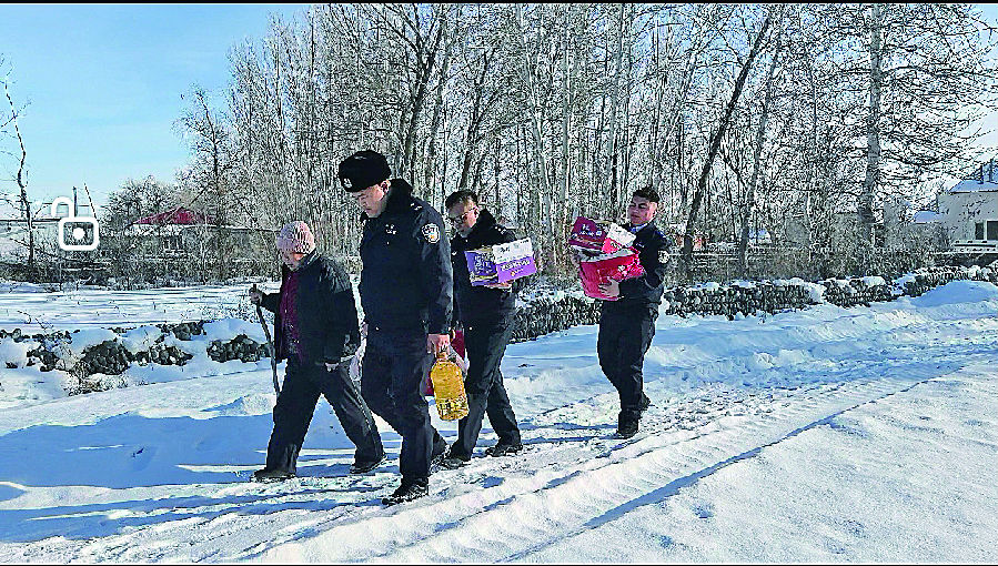 2月14日,民警前往赵秀云家慰问。 叶尔都斯·哈那提 摄