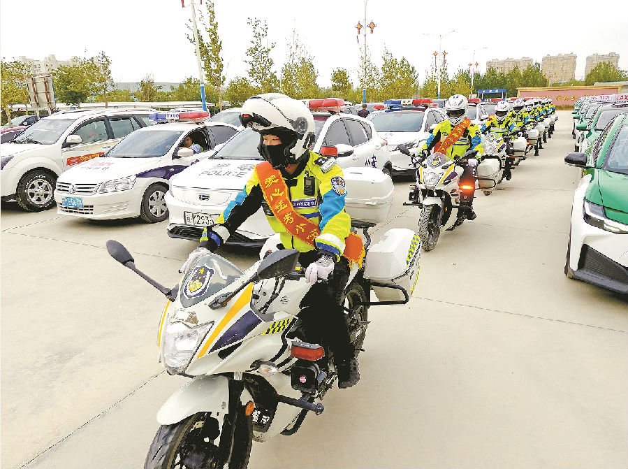 6月5日,库尔勒市公安局交警大队组建的“骑警护考队”启程护考。 苏比努尔·艾热提江 摄
