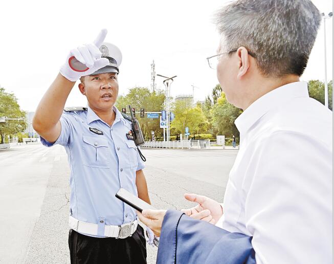 该路段人车密集,需要民警快速反应。“有外宾车队即将通过。”对讲机里传来勤务信息,吕玉洁和同事赶紧分立不同位置,指挥行人和车辆有序、安全通过。