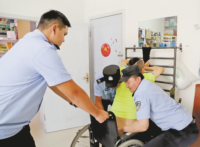 “我胸部以下瘫痪,做什么事都需要人帮。父母年迈,保姆一个人又扶不动我,这些年多亏了民辅警的帮助。”李伟向记者讲述了他和花海子警务室民辅警的故事。