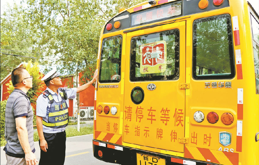 A+ | a8月19日,奎屯市公安局交警大队对辖区学校校车开展安全检查,重点检查驾驶人有无资质、车况是否良好、安全标志是否齐全,及时消除隐患,为学生上学路筑牢安全屏障。