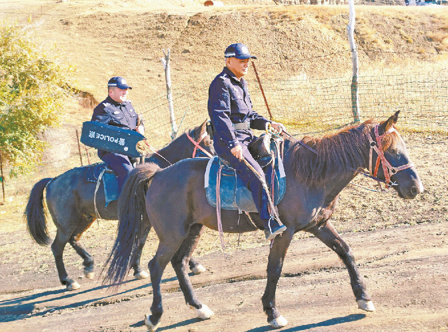 10月,杜文科与同事骑马巡逻。