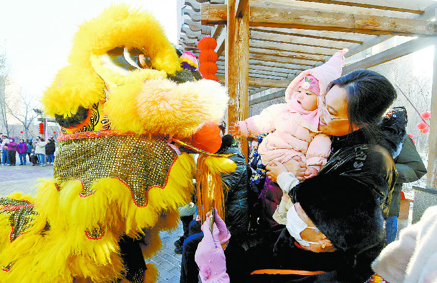 11月22日,来自疆鸿龙师团的“狮子”和观众互动。当日,“祥龙瑞狮贺岁,传承民俗经典”乌鲁木齐市沙依巴克区社火交流展示活动在荣和城二期广场举行。本次活动由中共乌鲁木齐市沙依巴克区委员会宣传部联合红庙子街道共同主办,旨在传承和弘扬中华优秀传统文化,丰富群众文化生活,促进文化交流。