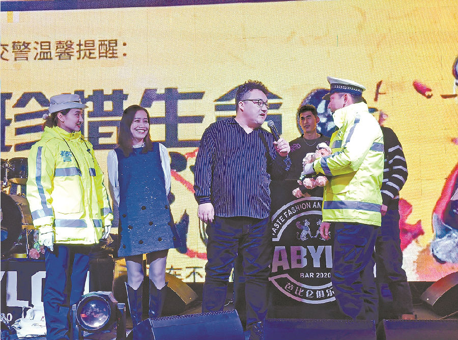 1月1日凌晨,吐鲁番市公安局交警大队民警走进酒吧,以问答方式开展拒绝酒驾醉驾宣传活动。 刘亚楠 摄
