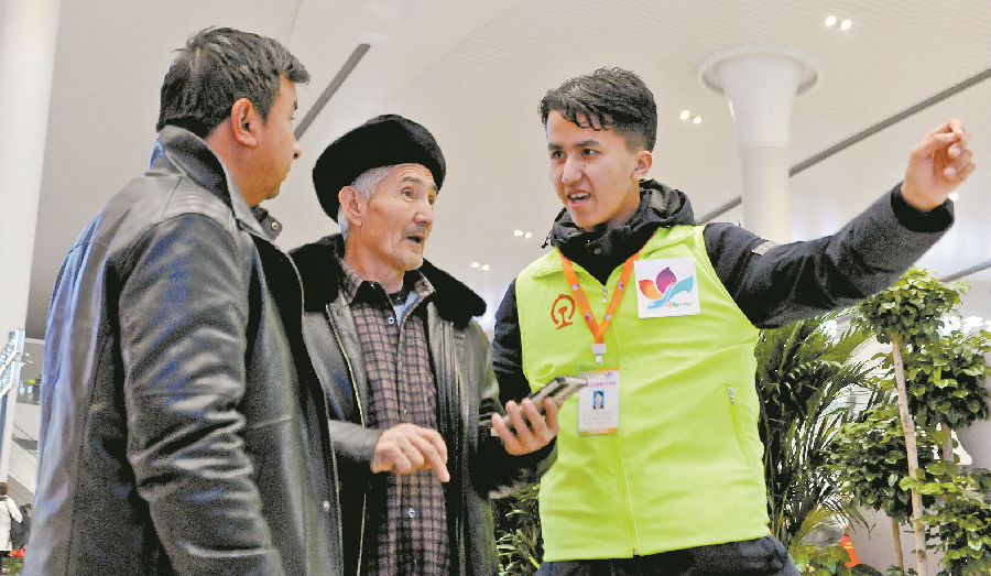 “志愿者和工作人员帮我们提行李,带我们到重点旅客候车区休息,临近发车又把我们送到检票口。”当天,布热比亚姆·图逊带着腿脚不便的母亲准备返回喀什,她说,车站工作人员的服务给了她和母亲满满的安全感。