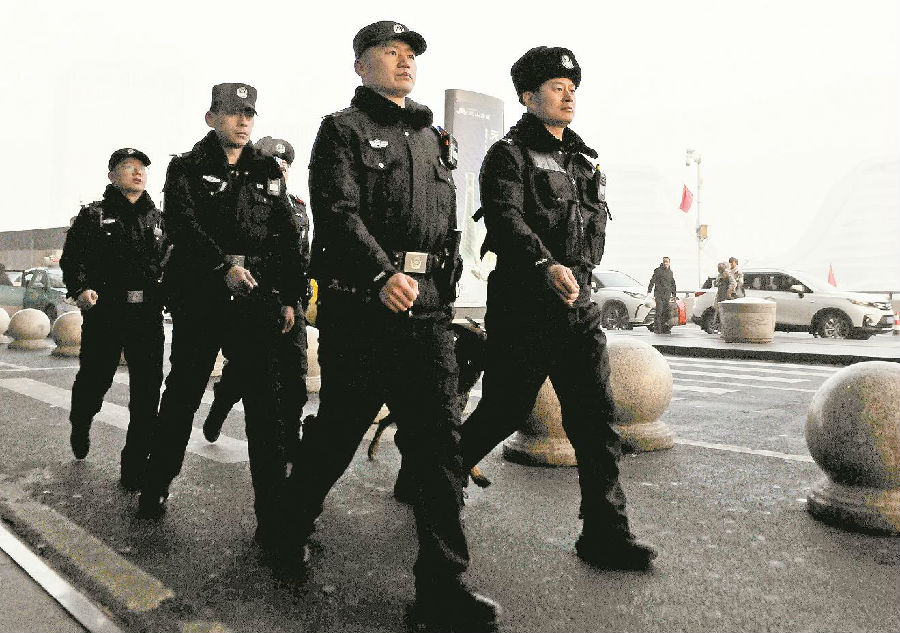 乌鲁木齐站派出所、乌市公安局经济技术开发区(头屯河区)分局高铁车站派出所民警联合在乌鲁木齐站北广场执勤。