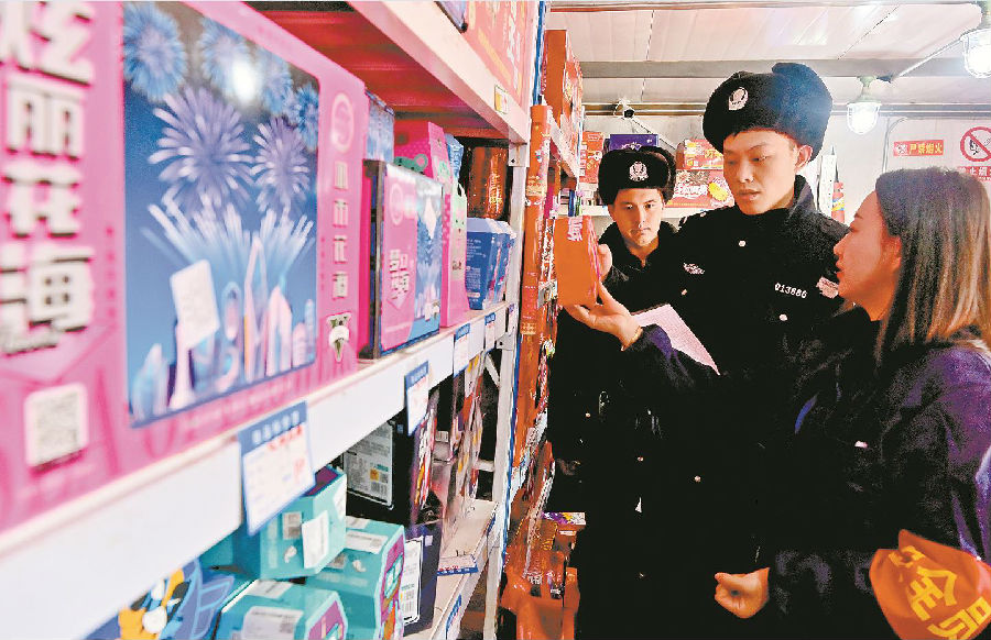 当日,该所组织民辅警排查辖区烟花爆竹销售点安全隐患,对部分零售点消防器材配备不足、警示标志张贴不明显等问题,当场下达整改通知书,责令店主立即整改。 石榴云/新疆法治报记者 单坤 摄