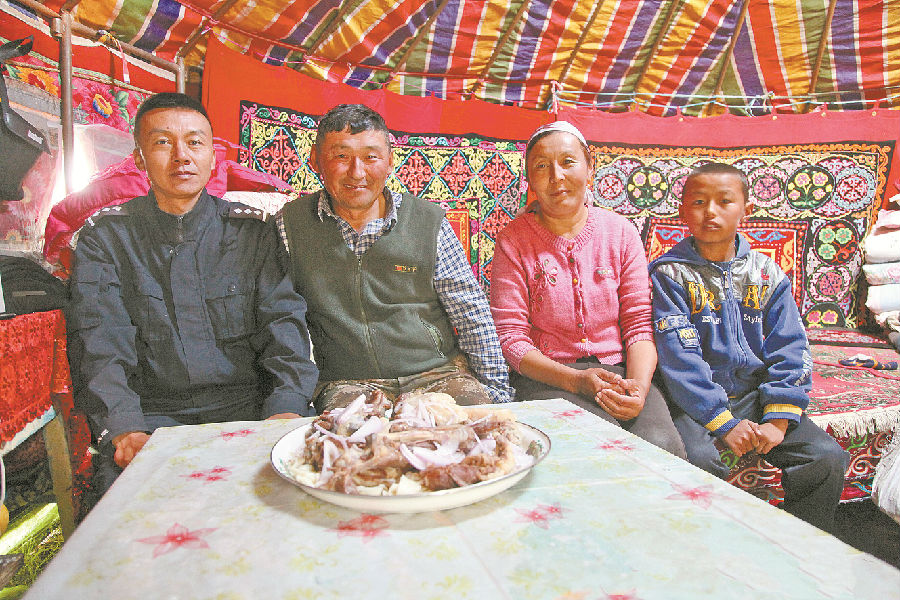 逢年过节时,拎上米面油上门探望;孩子开学了,送上书包、文具等学习用品;日常巡逻时,总要问问生产生活情况……结为亲戚以来,程云鹏一个又一个的小善举,如同涓涓暖流,温暖沙力塔拉提一家人的心田,激励他们把日子越过越红火,仅养殖的山羊数量就从最初的30多只,发展到现在的100多只。