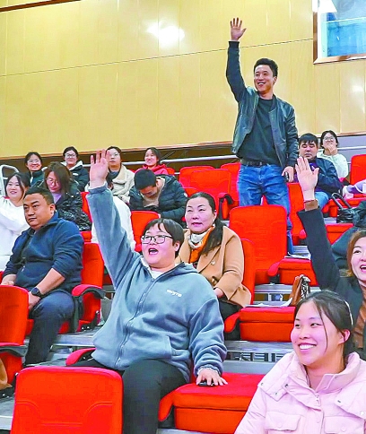 第七师胡杨河市职工群众踊跃参与互动答题。 王伟 摄