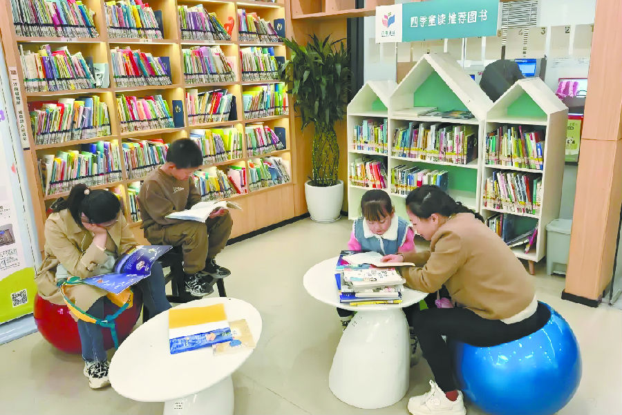 4月12日,家长与孩子在四川省图书馆青少年阅读研学中心读书。新华社记者 边思琪 摄