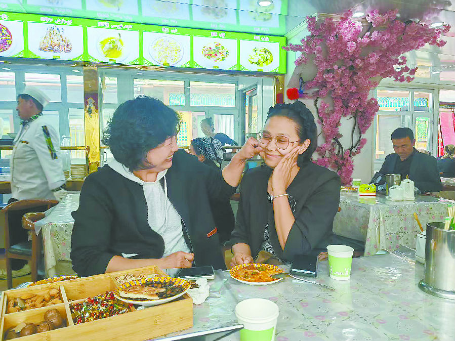 闲暇时,塔吉古丽会和李红视频通话,分享餐厅里的事:“今天有上海游客夸我们的烤全羊好吃,你教的‘微笑服务’真管用!”