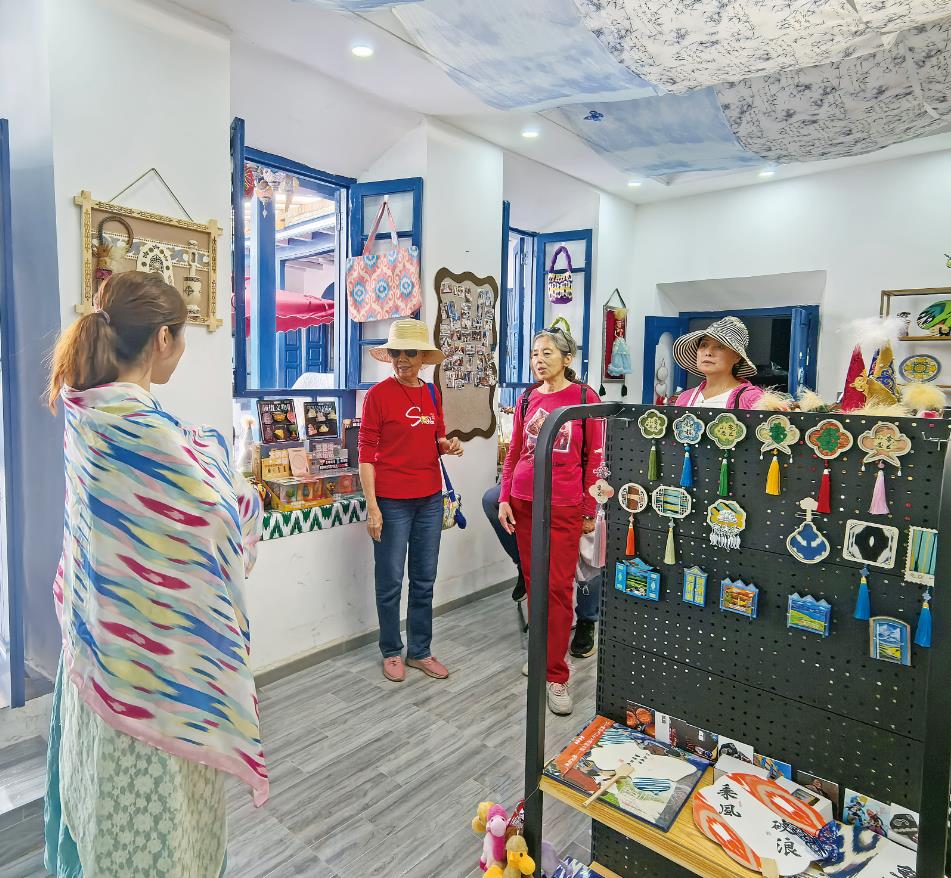 巾帼创业工坊是在宁波市援疆指挥部的支持下修缮而成。“当初修缮时,为找到匹配的木料就花了3个月。”吐尔松阿依介绍,2023年,库车市萨克萨克街道开启了龟兹小巷的蝶变之旅,将街道里的一处院落规划为妇女创业基地,为吸引并留住创业姐妹,街道深入调研,最终采取“象征性租金+全程帮扶”的模式。如今,工坊内有多位创业女性,相继开了奶茶店、艾德莱斯绸手工艺品店及非遗工坊3家特色店铺。