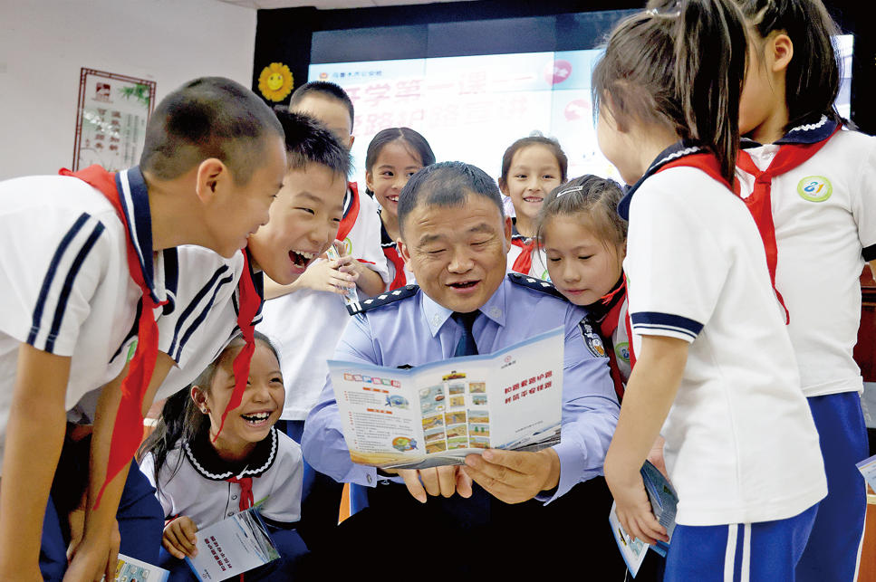 A+ | a9月2日,乌鲁木齐铁路公安局乌鲁木齐公安处乌鲁木齐西站派出所联合辖区铁路单位在乌市第八十一小学开展普法宣传活动。民警与铁路工作人员通过展示PPT及现场宣讲的方式,普及铁路安全知识,号召同学们积极参与“小手拉大手”行动,把学到的爱路护路知识传递给家人。