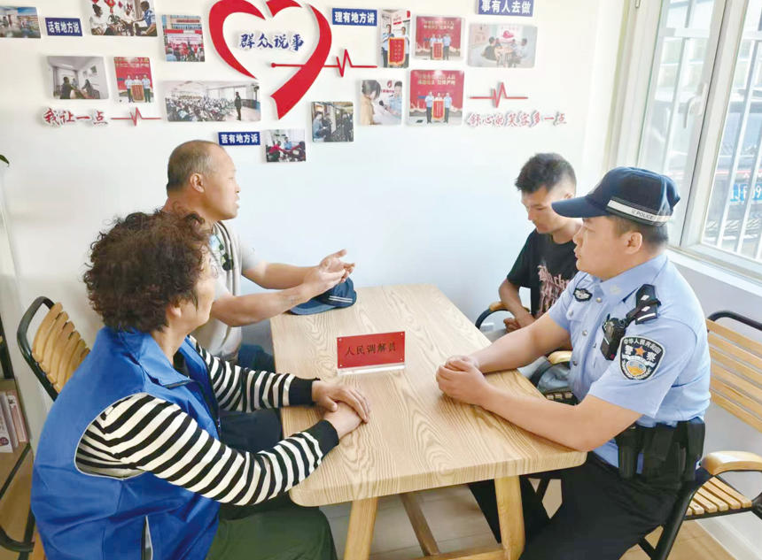 这样的场景在“七色花”警调室屡见不鲜。胜利路街道派出所地处老旧小区与商业网点密集区域,矛盾纠纷类警情多发。为应对这一挑战,2023年10月,该所成立“七色花”警调室,吸纳市场监管部门、人民调解员、律师等多元主体入驻,一站式受理、一揽子调处、全链条解决矛盾纠纷。