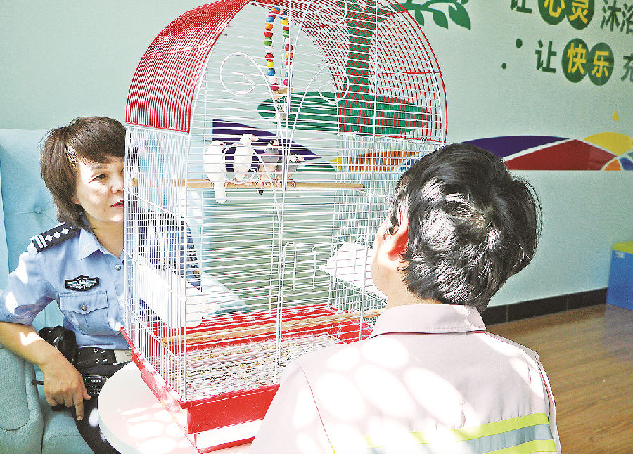 8月15日,乌鲁木齐第一强制隔离戒毒所戒毒民警通过“动物疗愈”为戒毒人员进行心理辅导。 艾尼瓦尔·热合木吐力 摄