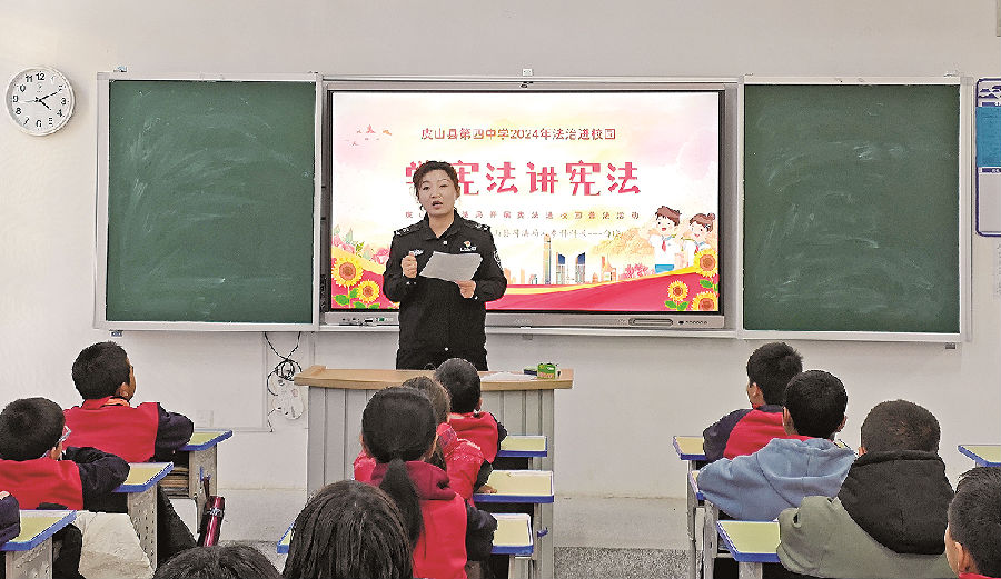 2024年12月4日,皮山县司法局干警向该县第四中学学生宣讲宪法知识。