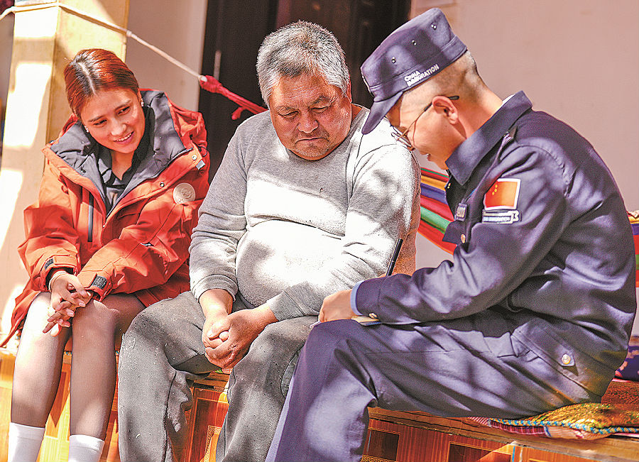 一进院子,张仕征跟图尔荪打了个招呼,就开始打扫庭院卫生,手上的活不断。临走前,他还帮图尔荪测了血压,叮嘱他按时吃药。