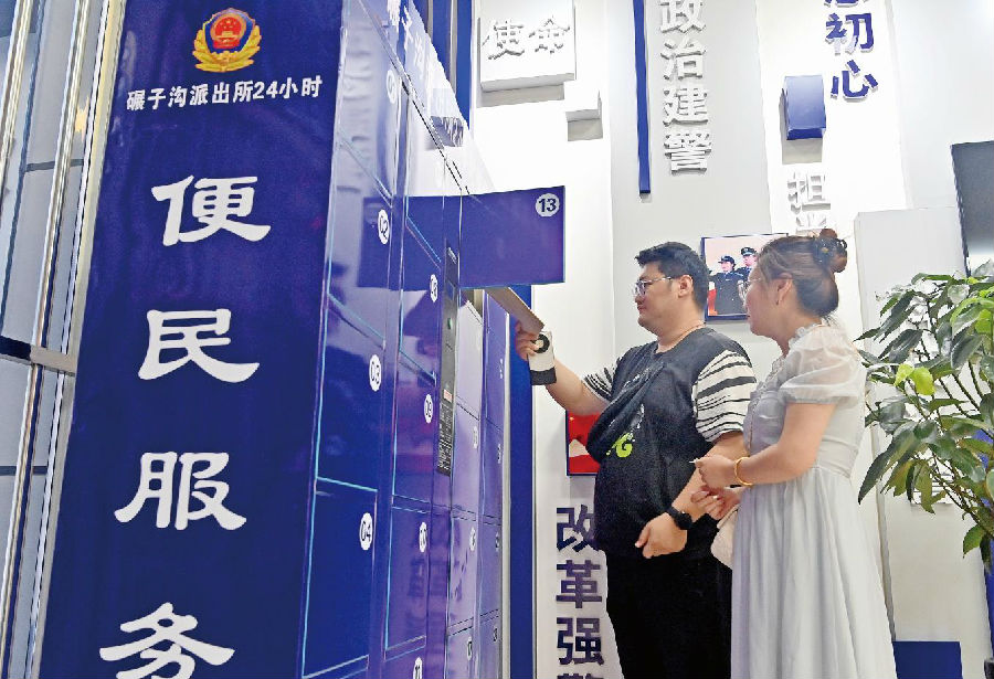 近日,乌鲁木齐市公安局长江路街道派出所(原碾子沟派出所)为方便群众提交户籍迁移、身份证换领等业务所需材料,在所内设立“24小时便民服务柜”,居民只需将办事材料存入柜中,打电话或发短信告知民警,民警便会取件办理,还可提供送证上门服务。石榴云/新疆法治报记者 单坤 摄