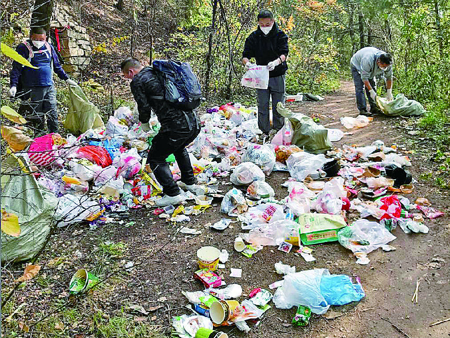 近两年,陕西西安的徒步爱好者黄先生每周都会组织6到8名户外爱好者到秦岭各个“野山头”捡垃圾2至3次,每次能捡回约200斤垃圾,“都是徒步爬山的人丢的”。
