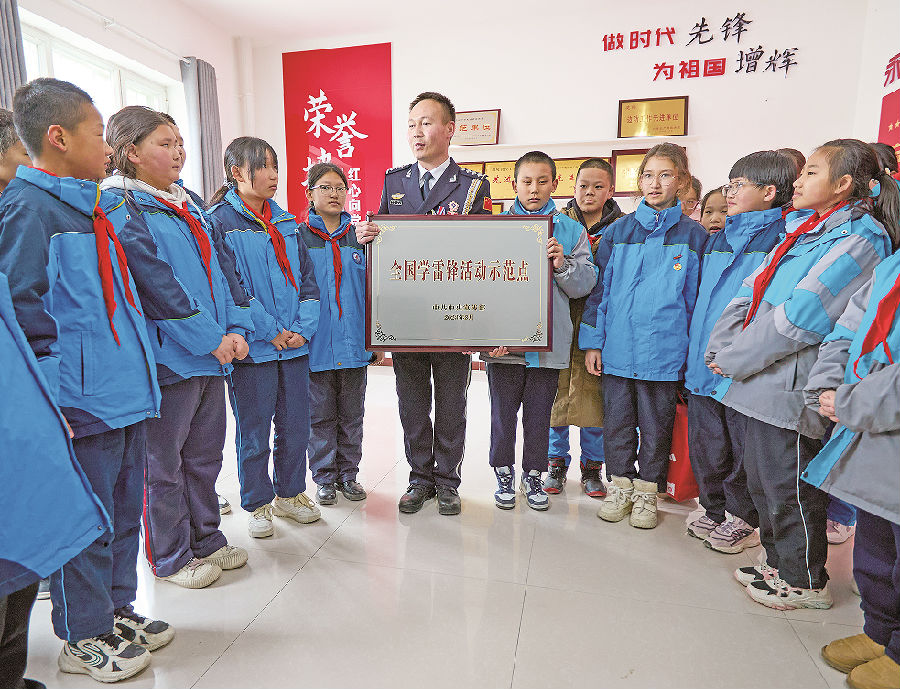 自2022年起,温泉县团委、少工委、博尔塔拉职业技术学院等单位分别在警务站挂牌爱国主义教育基地、党员教育基地、实践教学基地。阿思里别克有了新身份——讲解员,为到基地参观的党政机关工作人员、在校学生宣讲爱国主义精神,有时,许遥远也跟着师傅客串讲解员。