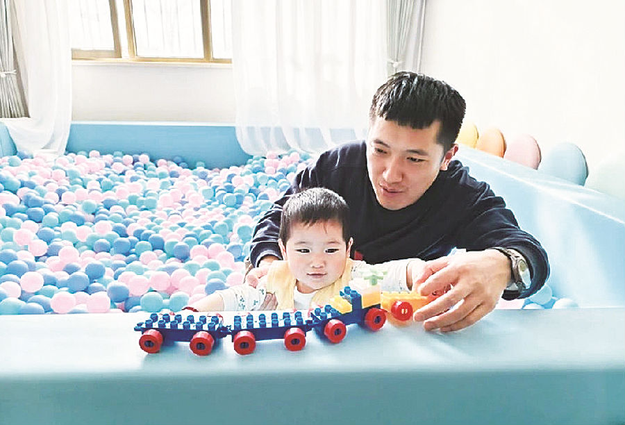 2月21日,喀什深空站电力技师陈磊陪伴随妻子前来探亲的女儿。 龙一菲 摄