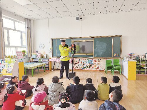 3月6日,兵团第二师焉耆垦区公安局交管大队组织各中队民辅警走进辖区中小学、幼儿园,为广大师生上交通安全课。