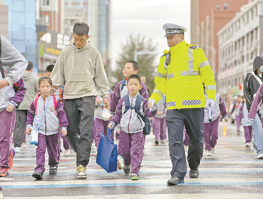“孩子就交给我吧,我送过去。”10月17日7时30分,在银川市第二十一小学湖畔分校旁的丁字路口,银川市公安局交警分局金凤区交警二大队副大队长王辉熟练地将一名学生从家长的车上接下,并护送其通过斑马线来到校门口。“家长把孩子放在路口,由我们护送,家长停车时间缩短,道路自然畅通了。”