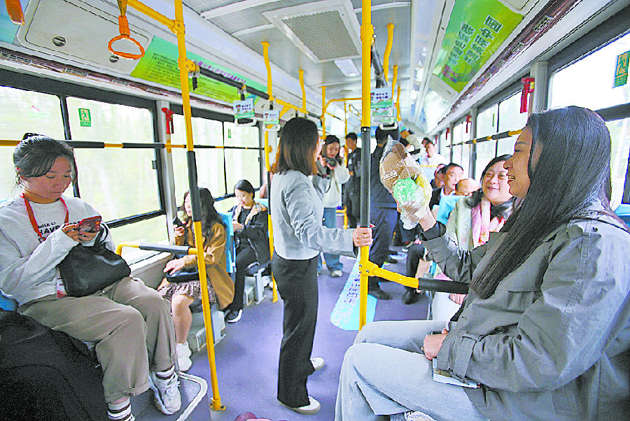 10月18日,采访团记者乘坐“法治公交”体验普法专线。 受访单位供图