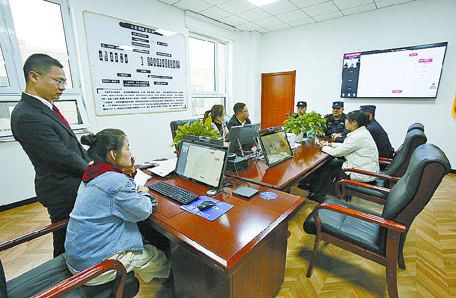 10月18日,镇北堡人民法庭正在利用远程视频系统调解一起纠纷。 受访单位供图
