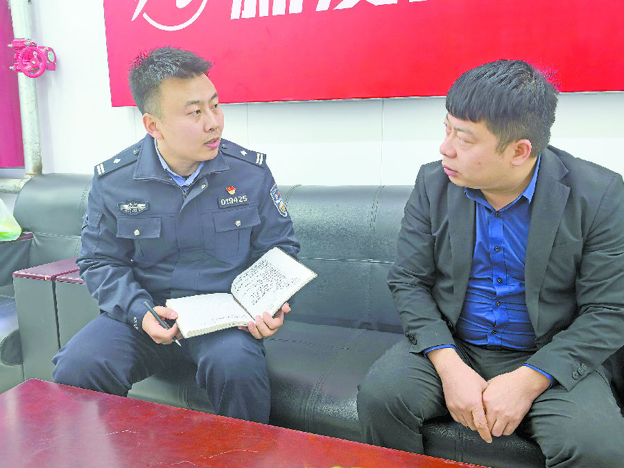 杨啸峰走访辖区企业,排查安全隐患。