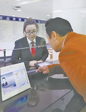 近日,在乌鲁木齐市中级人民法院诉讼服务窗口,一名当事人通过多语种翻译机与法院工作人员交流。