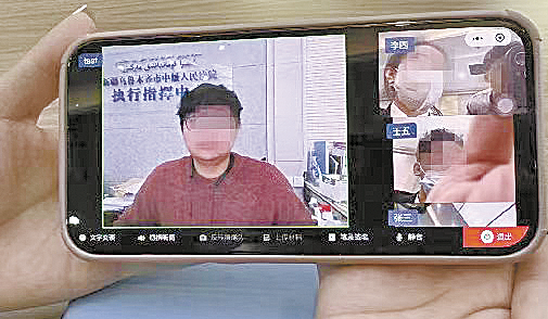 近日,一名当事人通过执行跨网谈话系统与执行法官视频通话。