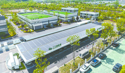 浙江杭州梧桐路“光储充检”智慧能源综合示范超级充电站于近期投入运营,该超充站配有可实现汽车与电网双向能量流动的反向充电桩。 龙巍 摄
