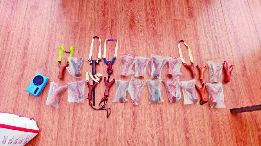 今年4月,辽宁省沈阳市公安局浑南分局破获一起以网络直播“教学”猎鸟,引流售卖热成像夜视仪、弹弓等狩猎工具牟利的案件。