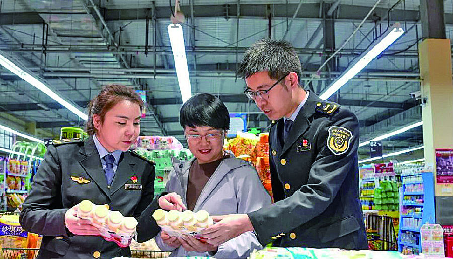 今年3月,乌什县市场监督管理局工作人员向消费者开展普法宣传。 史启发 摄