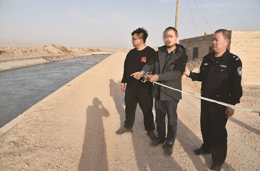 2023年3月5日,温宿县公安局民警带柴斌指认作案现场。