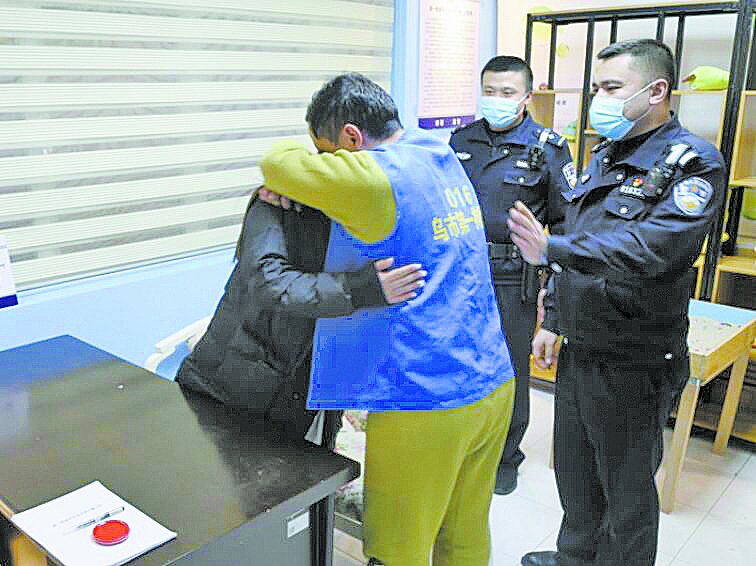 今年1月,小帕和小苏在民警的调解下和好相拥。 王雪 摄