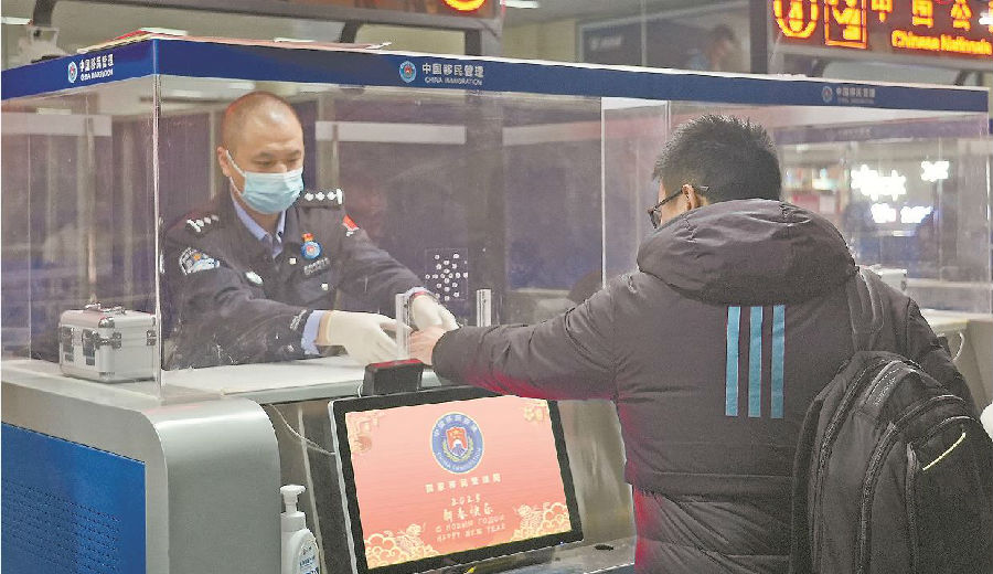 “新春快乐,欢迎回家!请出示您的护照。”朱昱笑着说。春运期间,为入境旅客送上新春祝福,是负责前台查验工作的朱昱和同事商议后实施的服务举措之一。“入境旅客多为返乡中国人,我们想让大家感受到家的温暖。”朱昱介绍,此外,他们还在引导服务台、旅客候检区挂上灯笼、福字。