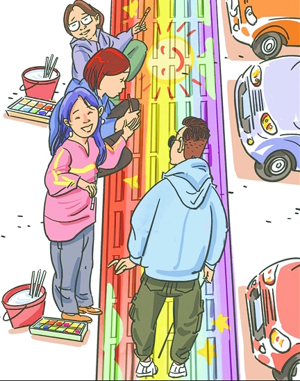 “他们看不到色彩,却能走在彩虹上。”据央视新闻报道,近日,浙江丽水一条用画笔和颜料铺就的“彩虹之路”走红网络,它由数百人在盲道地砖上共同绘就。活动由一名90后独臂女孩发起,初衷是让更多人注意到盲道,让视障人群出行更畅通。