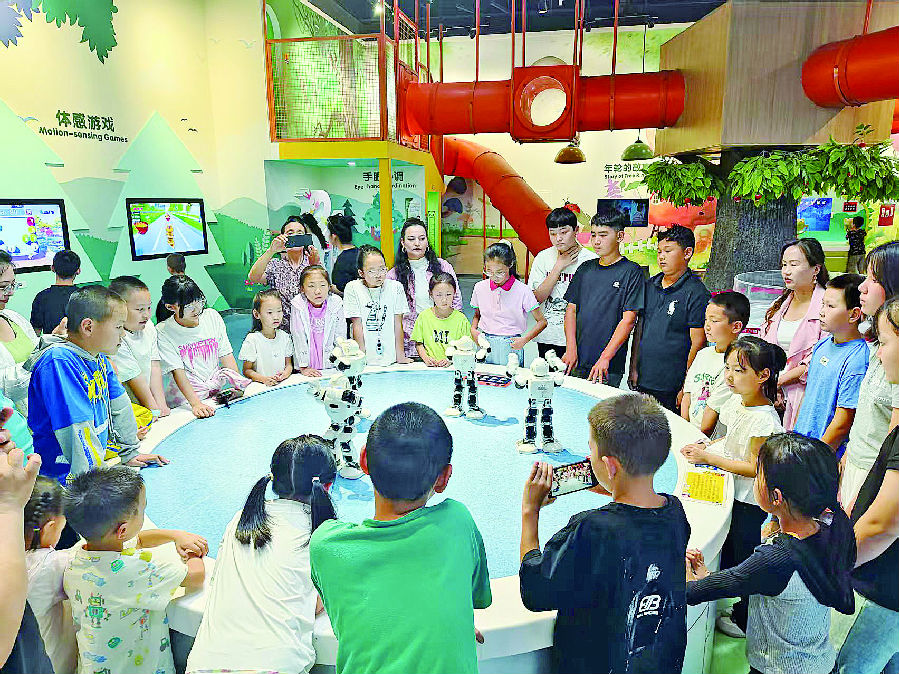 八月,库尔勒市渠犁镇和梨香街道的孩子们一起参观市科技馆。 李保林 摄