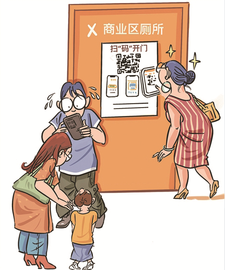 公厕的第一职能就是服务于有需求的群众,不该任由管理方设置门槛。况且,将注册会员等行为作为用户享受服务的前提并获取与服务无关的个人信息,已经涉嫌违反消费者权益保护法、个人信息保护法等。不论出于管理方便还是增强用户黏性等商业目的,给公厕大门设置密码锁,都扭曲了服务的本意。人有三急,如厕扫码这种荒唐事恰恰反映出商家为获取一点消费资源黔驴技穷的拙劣之“急”。 文/嘉湖 图/赵春青