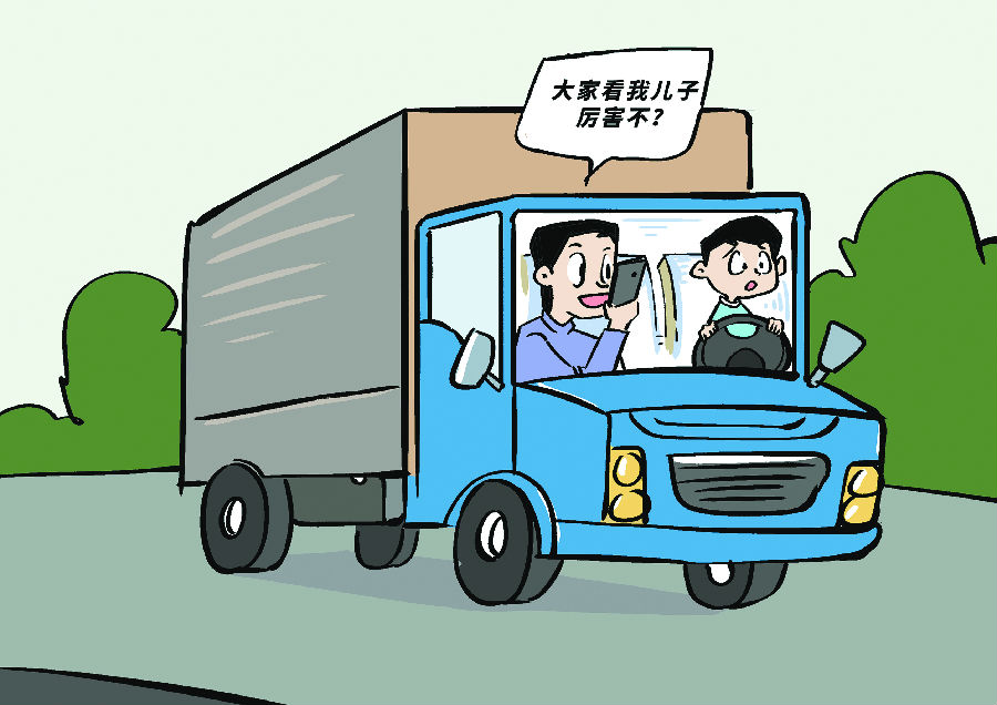 经了解得知,当日,图某驾驶大货车送货时,带上了16岁的儿子。途中,图某感觉路上车流不大,想让儿子练练车,提前学习驾驶技术,便互换座位,让儿子驾驶大货车前行,自己则坐在副驾驶位上录制视频,并发布炫耀。