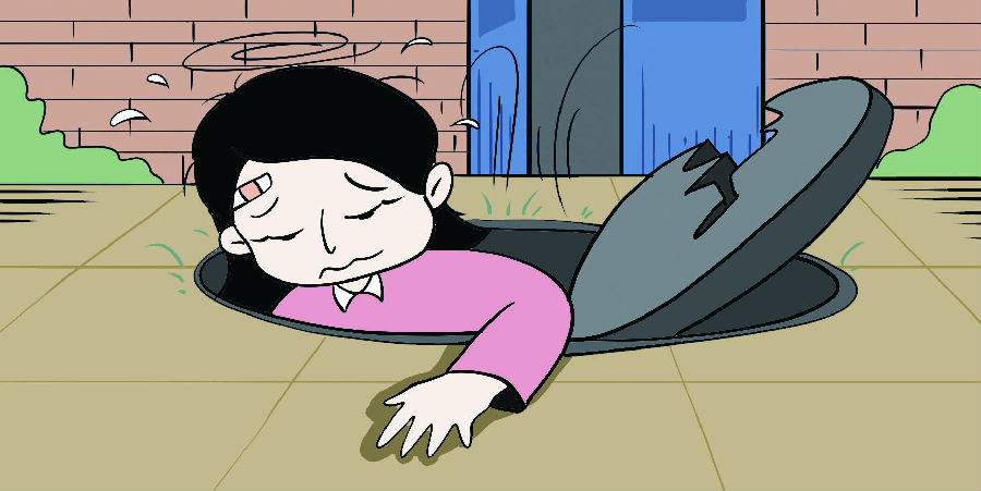围观女子王某为躲避抓捕,慌乱逃跑时不慎坠入该单位院落里被杂草掩盖的窨井,导致严重受伤。