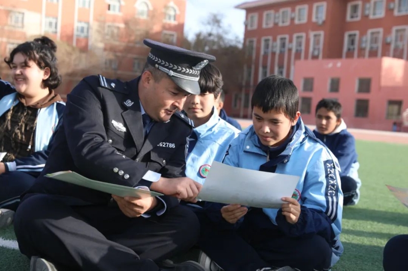 一旁,身为法治副校长的民警凯麦尔艾力·阿不力米提适时解释:“这条新闻是我们编造的,其中的视频也是由网络素材合成。现在,视频类应用已经成为未成年人日常生活中重要的娱乐休闲工具和信息获取渠道,对此,我们一定要具备鉴别意识,分清信息来源,拒绝盲目跟风。”