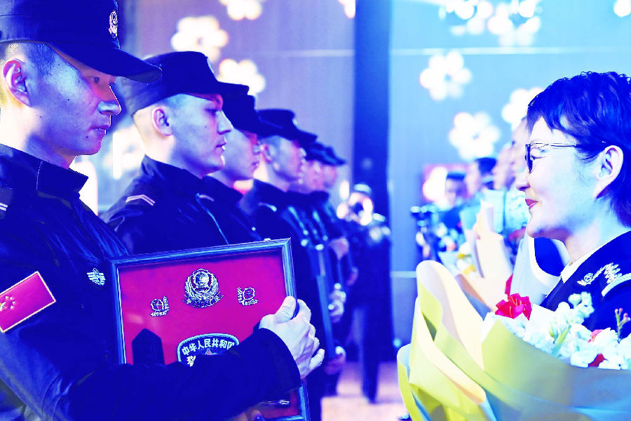 “最后和我们的警队,和我亲爱的战友们,还有我挚爱的公安事业,说一声再见吧,这里永远是我安放心灵的精神家园!”台上,还有5天就将光荣退休的乌鲁木齐市公安局米东区分局党委委员、政工室主任王宏眼含泪水深情地说。台下响起热烈的掌声。